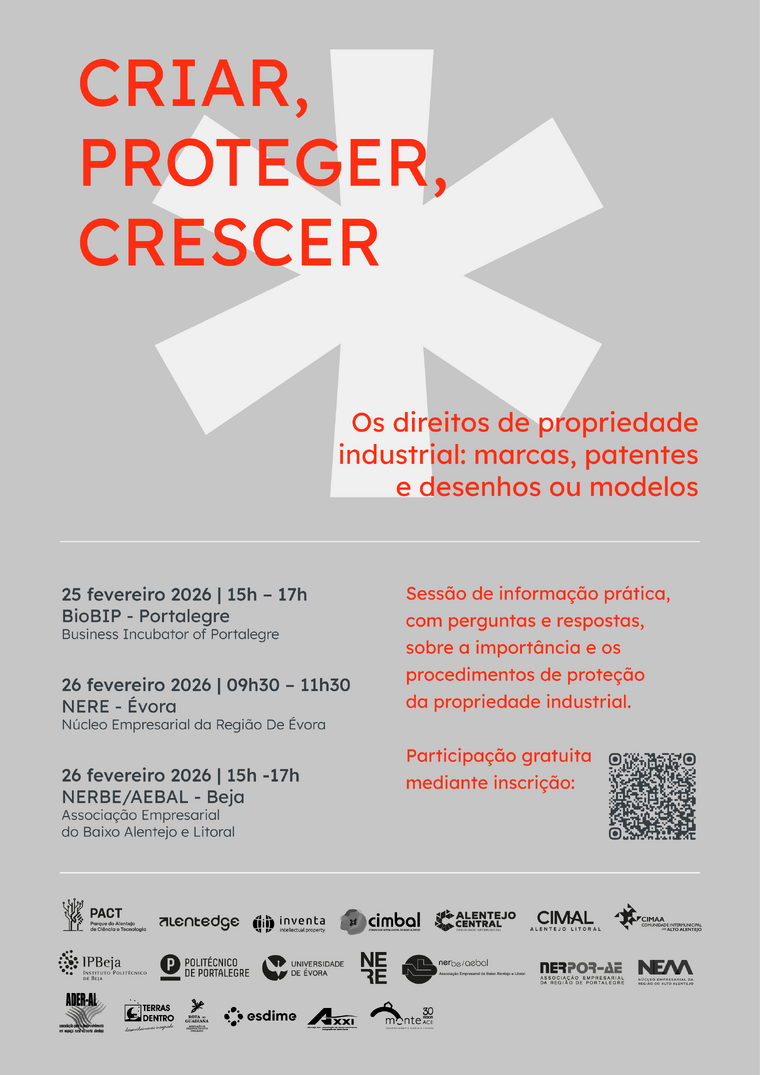 O PACT – Parque do Alentejo de Ciência e Tecnologia está a desenvolver, em parceria com a INVENTA, um conjunto de ações de informação sobre potencial e processos de proteção de propriedade industrial e intelectual, incluindo marcas, modelos, produtos, a realizar no Alentejo, com a seguinte distribuição: